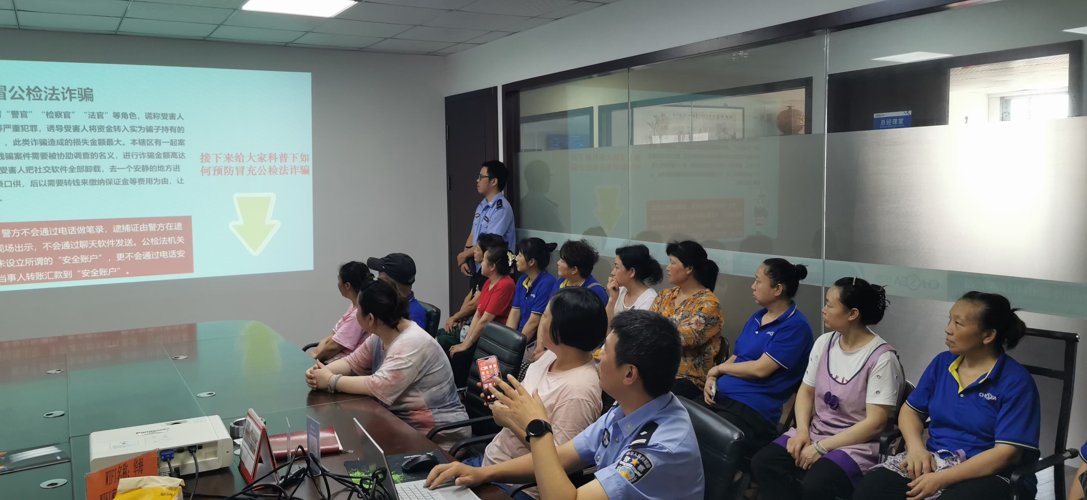 近日,永興派出所警官到華海現場展開防詐騙培訓。