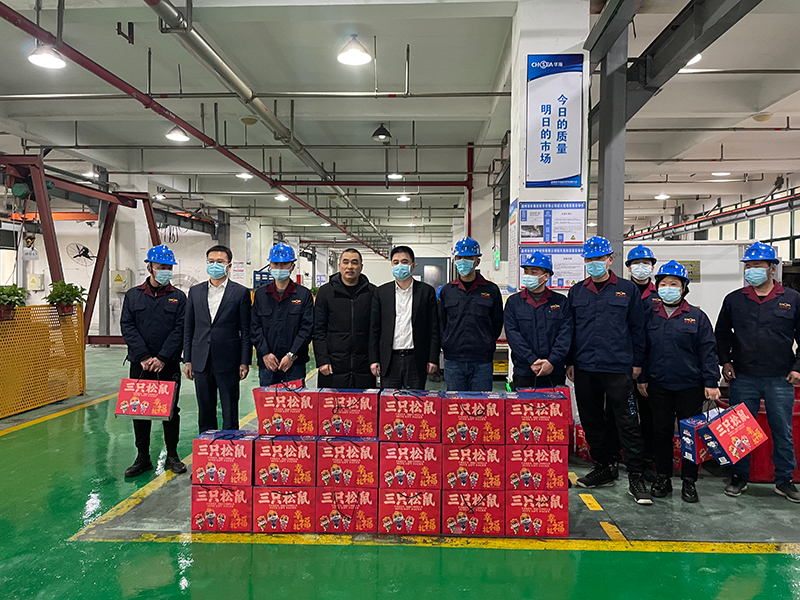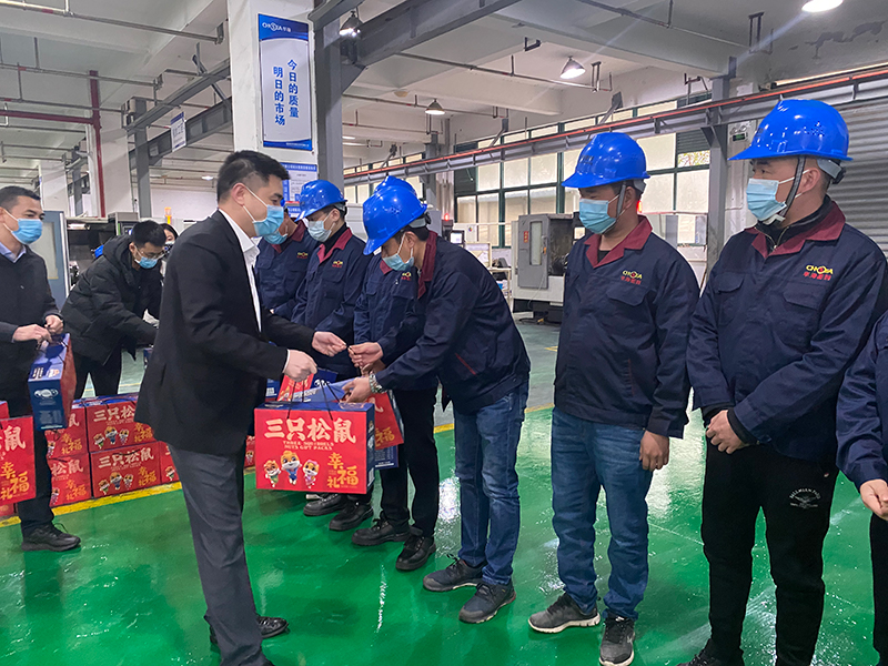 龍灣區夏區長在2022年前來溫州市華海密封件有限公司對公司員工展開新春慰問活動。