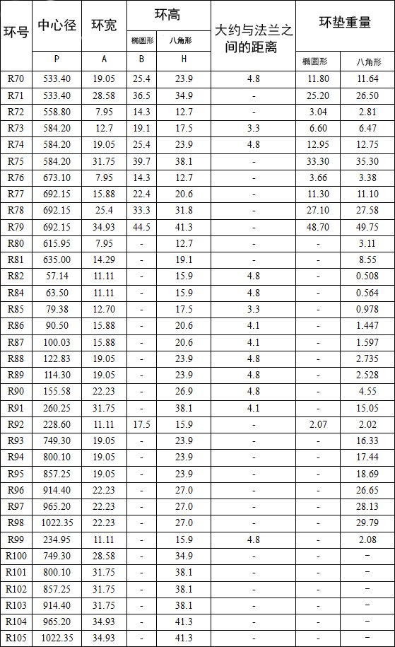 R型墊片的制造符合API 6A、6B和ASME b16.20適合API ASME/ANSI B16.5法蘭。在橢圓形和八角形配置,這兩種類型是可互換的現代八角型槽法蘭。
