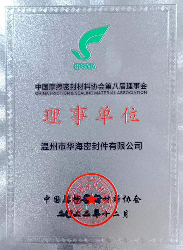 中國摩擦密封材料協(xié)會理事單位證書 中國液壓氣動密封件工業(yè)協(xié)會會員單位證書